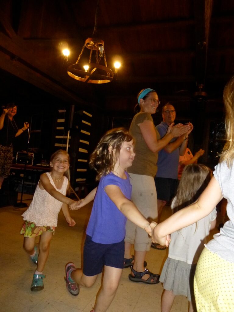Campers lead activities. See last year’s schedule. Past workshops included dance, instrumental, singing, craft, yoga, juggling and storytelling.