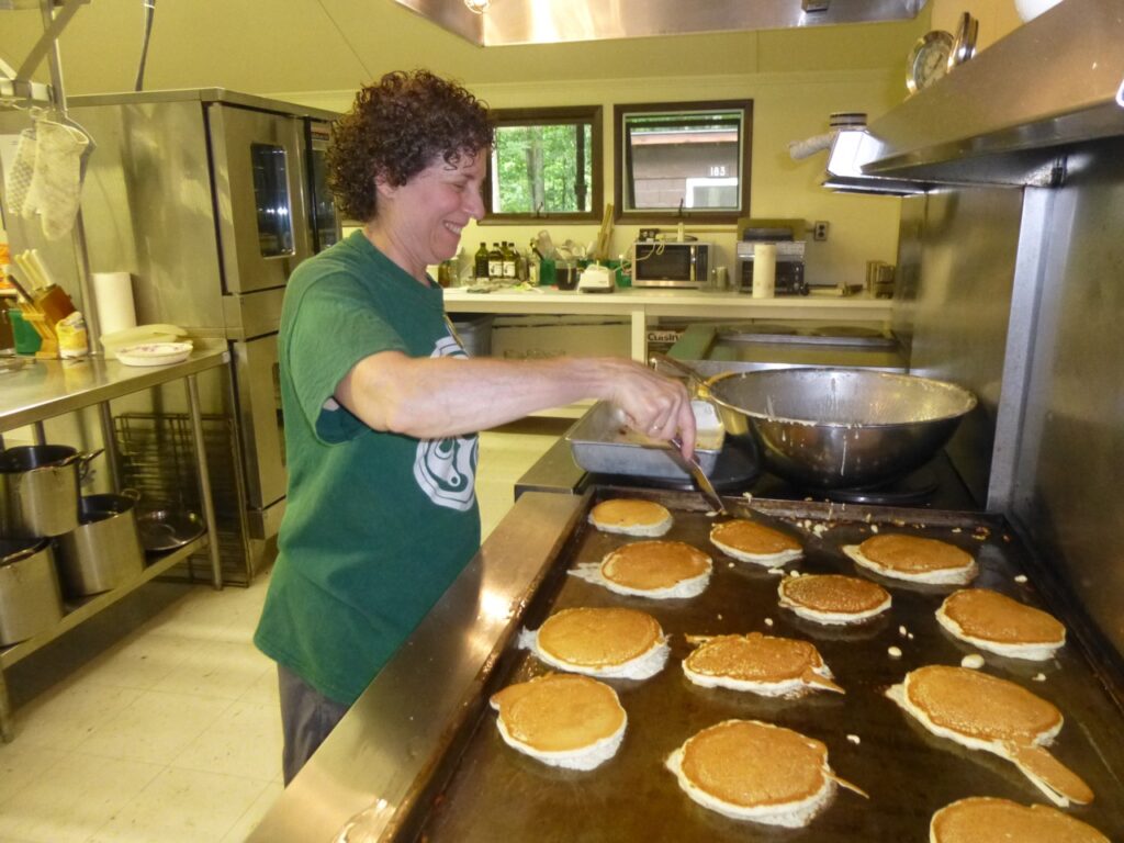 Meals are family style in our large indoor dining/dance hall with vegan, vegetarian and omnivore options, prepared by campers under the guidance of an experienced chef.